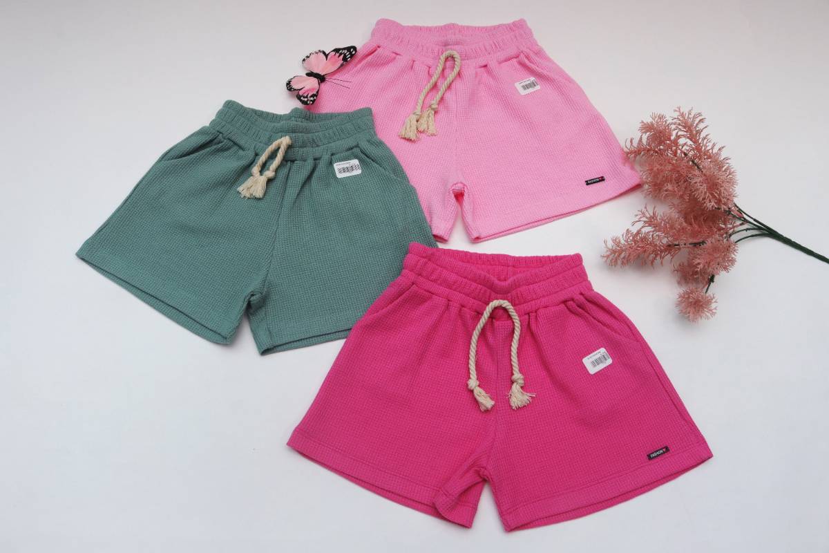 Short super fresco en algodón wafle 100% algodón ideal para este verano disponible en las tallas 6-8-10-12-14-16 colores chicle, rosado, verde cemento.