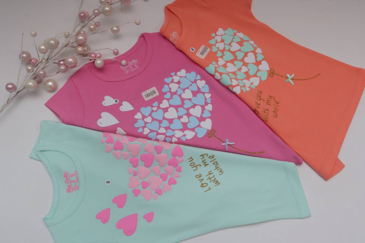 Polo manga corta clásico de niña, algodón 100% pima, es un algodón muy suave y fresco es antialérgico, tiene diseño de estampado de corazones en alto relieve 3D